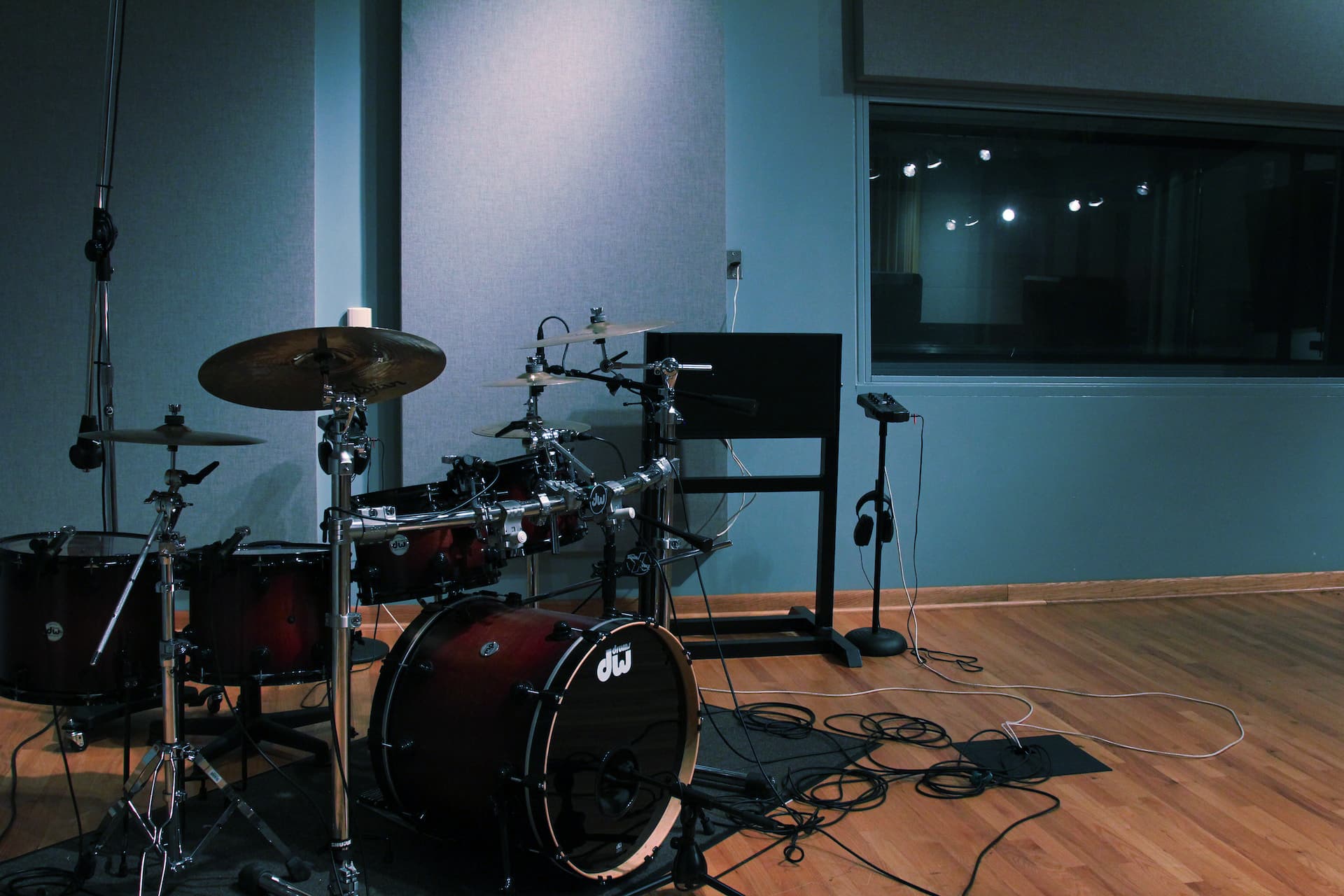 Toms : Placez le microphone à environ 5 à 10 cm au-dessus de la peau de frappe, légèrement orienté vers le centre du tom-tom. Vous pouvez également ajouter un deuxième microphone sur la peau de résonance pour capturer davantage de corps et de profondeur.