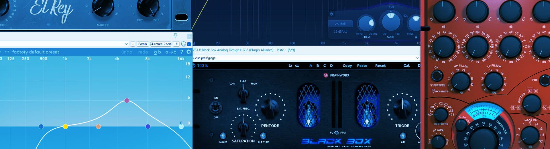 Les plugins les plus couramment utilisés sont les compresseurs, les égaliseurs, la réverbération, le delay, etc.